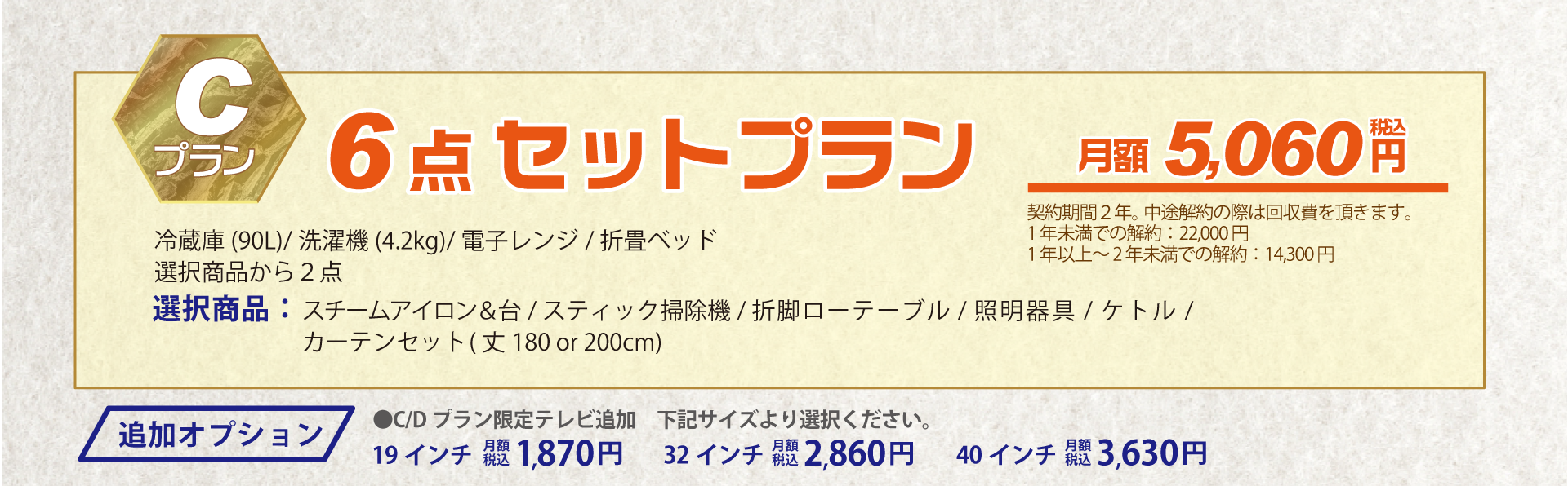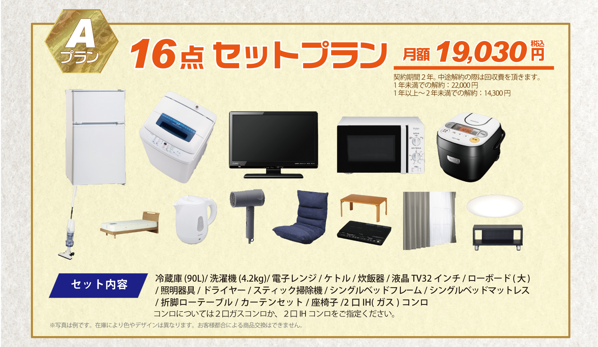 弊社プランでは、お客様一人ひとりのニーズに合わせた柔軟なプランを複数ご用意しております。アズマシティ開発の家具家電レンタルプランで、新しい生活スタイルを体験してみませんか?
